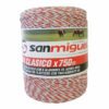 Ideal para cercas móviles. Con 15 monofilamentos estabilizados UV para una vida útil más prolongada y 6 hebras de alambre de acero inoxidable que le dan resistencia y conductividad. Son de color blancas y rojas por lo que identifican a SAN MIGUEL en el campo.