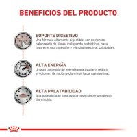 Es un alimento completo para perros, formulado para ayudar en el manejo de los trastornos agudos de absorción intestinal y promover la restauración nutricional y convalecencia. Ingredientes altamente digestibles. Elevados niveles de electrolitos y nutrientes esenciales. Densidad energética elevada.